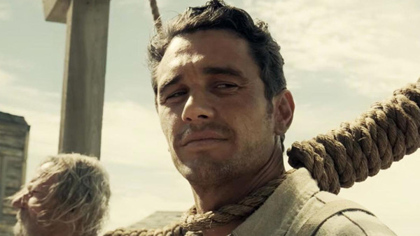 The first story features Tim Blake Nelson as the titular character, Buster Scruggs. Dressed in all white and singing a song while riding his trusty steed Dan, he hardly paints the picture of an intimidating gunslinger. However, through the usual Coen’s dark sense of humor, we quickly learn that we shouldn’t judge a book by its cover. Nelson is the perfect person to play this character, and he owns every moment of this short. One of my favorite moments of humor is when he walks into the first bar and pats the dust off himself, leaving a dust version of Scruggs standing in front of the door.