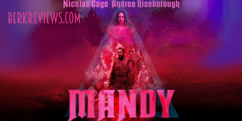Mandy (Andrea Riseborough) and Red (Nicolas Cage) live a quiet existence in their cabin in the woods during 1983…that is until Mandy attracts the attention of Jeremiah Sand (Linus Roache) and his hippie cult, who instantly becomes obsessed with her. He sends his demon bikers to retrieve her (though the rest of the hippies go, too), and when she calls him out on being a phony messiah, he loses it. Red seeks vengeance on the lot of them, and goes full Cage for the last half of the film.
