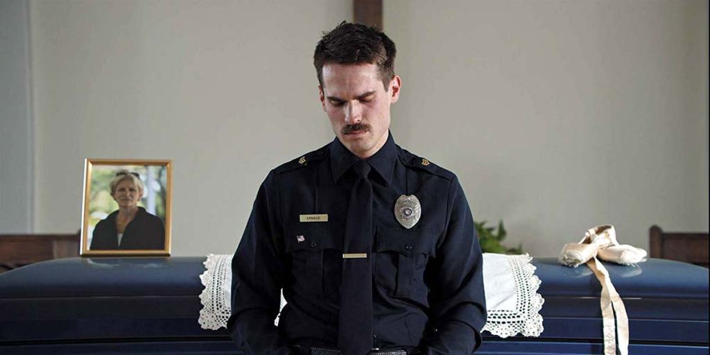Thunder Road starts just like the short film by the same name with Officer Jim at his mother’s funeral. He’s called up to say a few words – and right away, his awkwardness is apparent. When it becomes clear that he’s prepared a dance in his mothers honor, the comedy starts to really set in. In the original short, Jim sings along with Bruce Springsteen’s song “Thunder Road”, but in the feature film, the CD player won’t work, and he’s forced to do a narrative telling of the song’s story while still doing his dance. As if this scene doesn’t establish the bad way that Jim is in after the loss of his mother, it also shows that he’s going through a divorce and a subsequent custody battle. The tragedy is in the premise, but the comedy is in the writing and the performance.