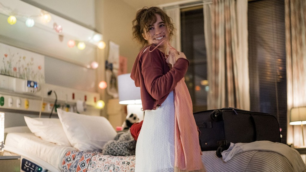 Stella (Haley Lu Richardson) is back in the hospital dealing with various problems as a result of CF. While receiving her treatments, she attracts the attention of another CF patient, named Will (Cole Sprouse). Stella is a strict follower of rules, and her treatment schedule is disrupted by Will’s apparent lackadaisical attitude towards all of it. She pushes him to do better, and he concedes – but only as long as he can draw her. However, the most challenging part of it all is that have to stay six feet apart in order to not spread one of their bacteria to the other.