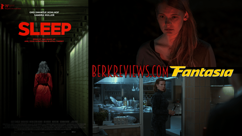 Sleep (2020) is a part of the Fantasia International Film Festival. Directed by Michael Venus and co-written with Thomas Friedrich, this horror film plays on dreams in a big way. Marlene (Sandra Hüller) has been suffering from nightmares of a specific hotel. When she discovers it is real, she is drawn to investigate. She leaves a trail for her daughter, Mona (Gro Swantje Kohlhof), to follow – which is fortunate, because Marlene is hospitalized the night after she stays in the hotel room. Mona finds herself needing a place to stay, and the hotel is the logical choice…but soon, she begins to experience her own nightmares.