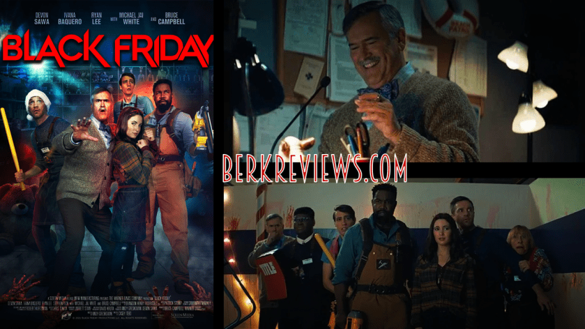 There is something to the magic of a Holiday movie mixed with horror. Maybe it’s the crossing of tones – that a character faced with near-death finds value in the family dynamic that is clearly dysfunctional. Or, maybe putting Bruce Campbell in a big box store fighting horrific monsters just works for cinematic enjoyment. Whatever the cause, Black Friday (2021), directed by Casey Tebo, will easily fit into your Thanksgiving Day movie watchlist, so long as B-Horror works for you.