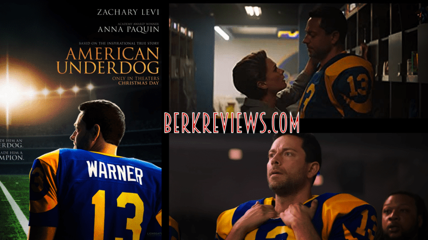 Kurt Warner’s 1999 Cinderella season is one that I will never forget, as he defeated my favorite team, the Tampa Bay Bucs, to take his Rams to the Super Bowl. This film goes back a bit further, with Zachary Levi playing Warner through from College, to the draft, to his failures, to Arena Football, and then to the Rams in 1999. While football is his dream and goal, the movie really centers on his relationship with Brenda (Anna Paquin) and her children. There are definitely some melodramatic moments that don’t work quite as well, but the movie manages to keep you invested and inspired by Warner’s story.