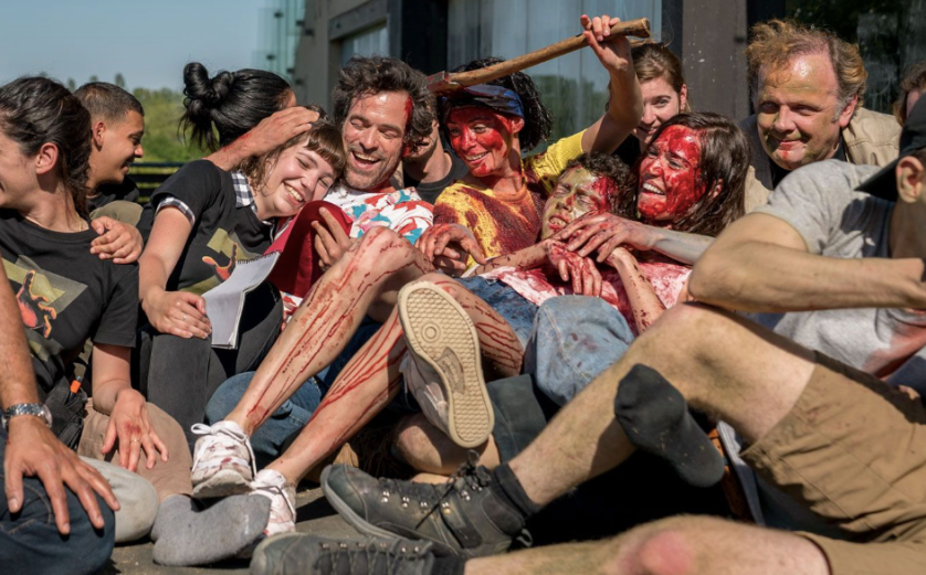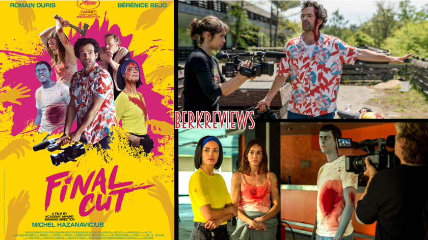 Before you watch director Michel Hazanavicius’s Final Cut, it’s a good idea to watch the film that it is remaking; One Cut of the Dead. It’s a zombie comedy featuring a small film crew that is in the middle of shooting a low-budget zombie movie. As the director (Romain Duris) attempts to get his cast to perform at the level he needs, things go badly for them all as they are attacked by real zombies. The big conceit of the film, which is in the title of the original, is that there is a 30-minute long take that opens the film. It’s impressive for a multitude of reasons – both in the original and in the remake.